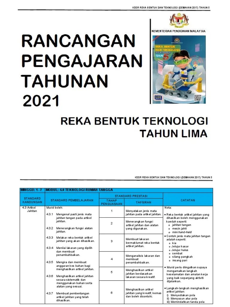 Rpt rbt tahun 5 2021 kssr semakan, rancangan pengajaran tahunan untuk tahun 5 2021 kurikulum standard sekolah rendah (kssr).